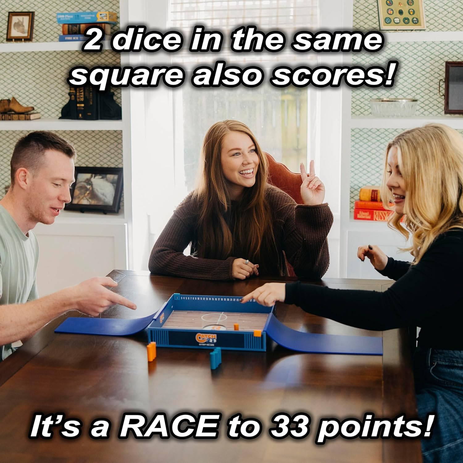 - It’s a race to 33 points in this “dice-launching” game where every shot counts!